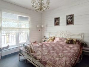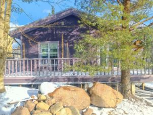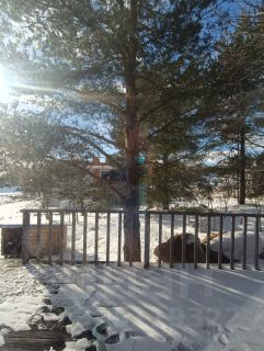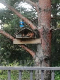 На участке растут величественные сосны, ели, а также яблони, вишня, малина. Обитает белочка, приходит на завтрак и обед к окошку.