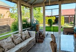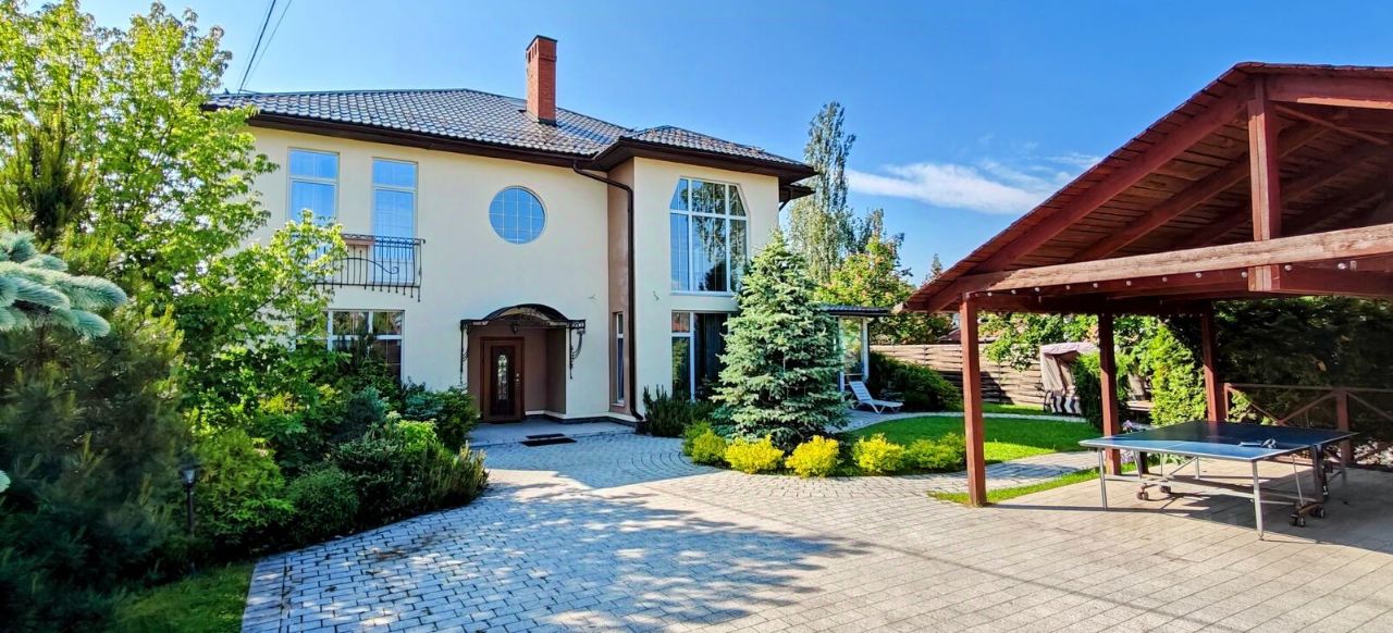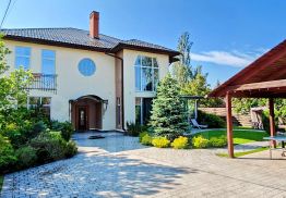Продажа двухэтажного дома из газобетона, общей площадью 263 кв.м. с функциональной планировкой. 1-й этаж: тамбур-гардеробная, холл, кабинет, гостиная с камином, кухня-столовая, гардероб, душевая, сауна, санузел, котельная, открытая веранда; 2-й этаж: три спальни(одна с выходом на балкон), ванная комната с джакузи, санузел. Мебель и бытовая техника входят в комплектацию дома. Отопление — газовый и электрический котёл, жидкостные тёплые полы; водоснабжение — скважина(резервный источник-колодец) со станцией очистки и фильтрации. Электроснабжение -15 кВт, локальная канализация с биосептиком. Фундамент-монолитная железобетонная плита, стены из газобетонных блоков толщиной 400 мм с утеплением, железобетонные перекрытия. Дом расположен на участке, площадью 6,2 сот, на котором проведены ландщафтные работы, зона барбекью, навес для двух машин, по периметру участок обнесен забором, установлена система видеонаблюдения, откатные ворота с электроприводом. Удобное расположение дома, рядом Киевское и Красносельское шоссе.
