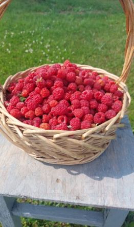 -растут яблоки, груши, вишни, сливы, смородина, малина.