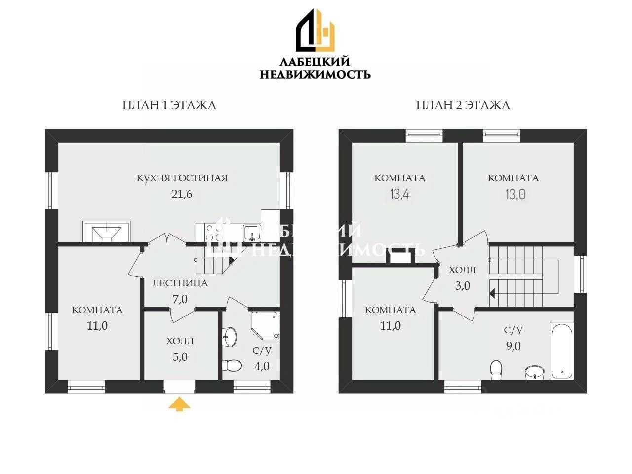 На первом этаже: ПРОСТОРНАЯ, СВЕТЛАЯ кухня-гостиная (21.6 м²) с печью-камином. Спальня (11 м²) , УДОБНЫЙ совмещенный сан/узел с душевой кабиной (4 м²).