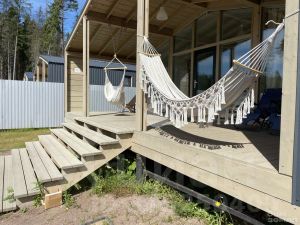 Технические характеристики:Электричество-15 кВт, заключен договор с ЛенэнергоФундамент-сваи, Утепление стен-150 мм, Крыша-металлопрофиль, утепление-200 мм, Окна-панорамное остекление, установлены пластиковые стеклопакеты. Коммуникации в доме:Канализация-септик, Вода-скважина, Отопление-электрические конвекторы и камин.