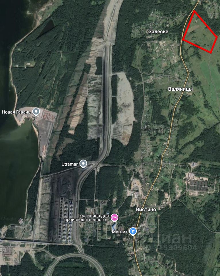 Большой земельный участок, ИЖС, Ленинградская область, Кингисеппский район, Вистинское сельское поселение (Вистино, Валяницы), порт Усть-Луга.