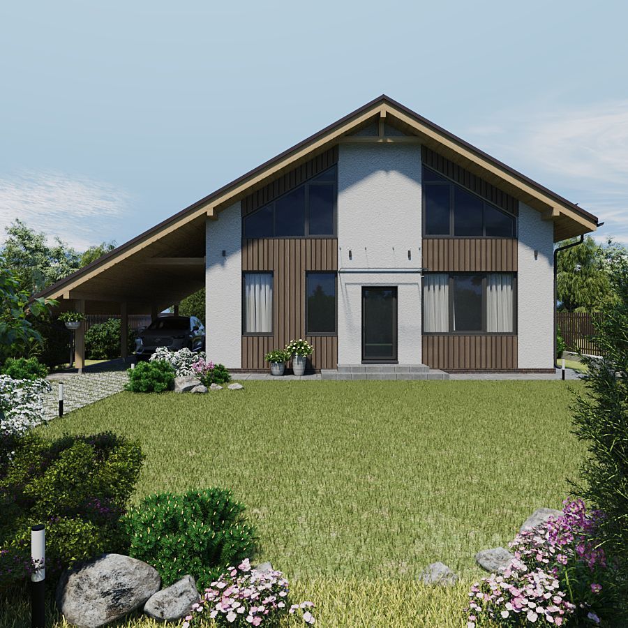 Фасад - комбинированный из декоративной штукатурки и фасадной панели