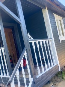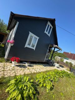 Сам дом хоть и небольшой,но очень уютный. Комната и кухня.Построен по каркасной технологии,с утеплением в 100мм. Имеется мансардный этаж с окном и утепленным полом. (осталось только утеплить стены и построить лестницу,по итогу получается полноценная комната)