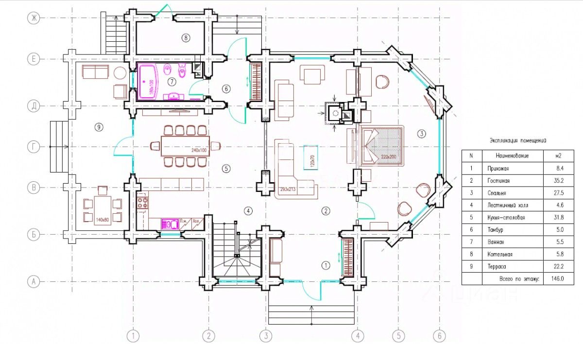 Так же в доме присутствует цокольный этаж с зонами отдыха и хоз. помещениями: