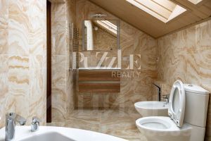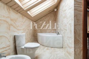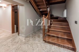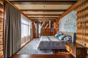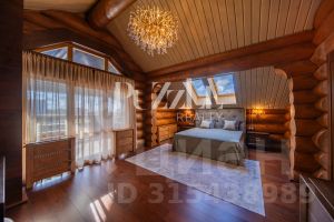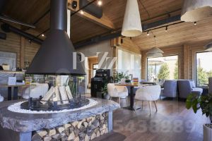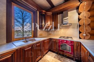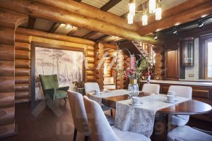 Тёплая фактура дерева придаёт дому необыкновенную легкость и уют, а также изысканный внешний вид. Стены украшают завораживающей красоты полотна, поддерживающие общий природный стиль. Мебель высокого качества из экологичных материалов, кухонный гарнитур из массива, оснащён современной техникой.