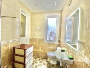 на 1-ом этаже расположены: кухня, гостиная, рабочий кабинет, санузел, душевая кабина, прихожая ( везде пол с подогревом), шикарная сауна с предбанником, кладовка, котельная, помещение для хранения инвентаря, погреб.