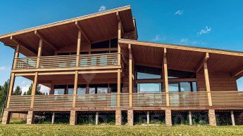 Проект W28-53: с террасами - 305 кв. м; без террас - 230,1 кв. м. Материал дома - клееный брус. Фундамент - монолитная плита. Инженерные сети: электричество - 15 кВт, централизованная система газоснабжения, централизованная система водоснабжения, централизованная система водоотведения. Участок огорожен металлическим забором (высота 1,5 м).