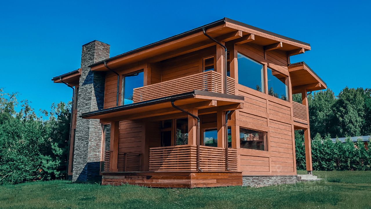 Проект W15-68: с террасами - 226,4 кв. м; без террас - 198 кв. м. Материал дома - клееный брус. Фундамент - монолитная плита. Инженерные сети: электричество - 10 кВт, централизованная система газоснабжения, централизованная система водоснабжения, централизованная система водоотведения. Участок огорожен металлическим забором (высота 1,5 м).