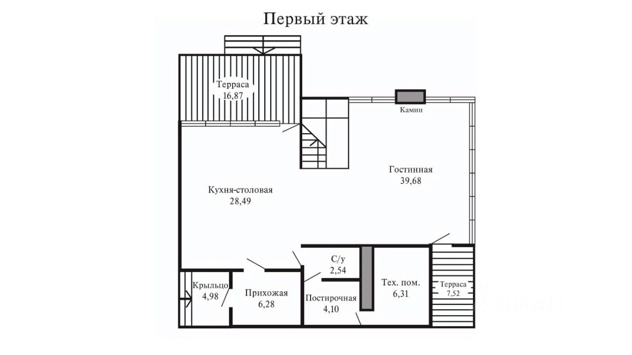 прихожая, кухня-столовая и гостиная с выходом на террасу, санузел, техническое помещение.