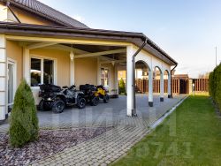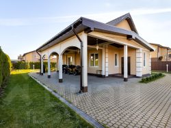 Площадь 170 м.кв. состоит из двух этажей, на первом выход на террасу с барбекю зоной. Центральное газовое отопление, электричество 15 кВт, водоснабжение и канализация всё подключено.