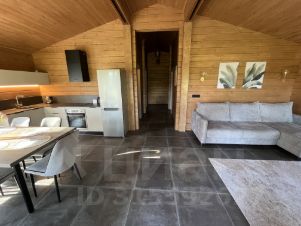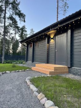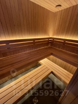 -В доме шикарная сауна с парящими полками, светодиодным освещением, электрической печью с выносным пультом и двухкамерным окном из кедра.