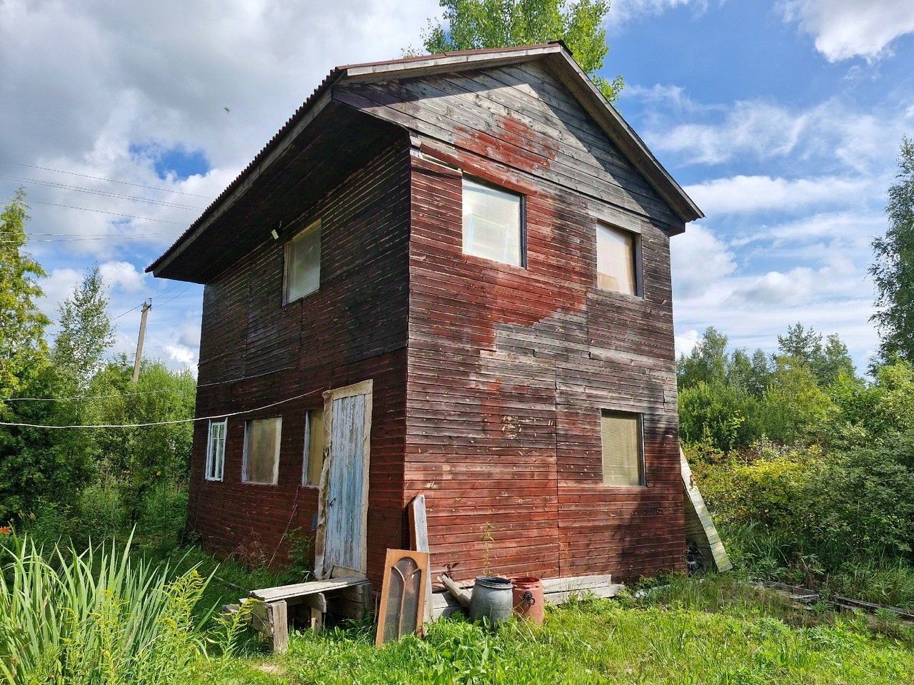 в Киришском районе, массиве Посадников Остров, продаётся дача, от СП-б примерно 150 км, можно приезжать на автомобиле, можно на электричке до 55 км.