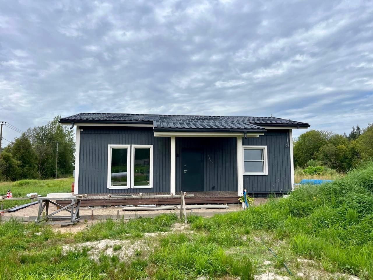 Дом одноэтажный с террасой. Общая площадь 76,1 м². Зарегистрирован как жилой в Росреестре, можно получить прописку.