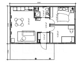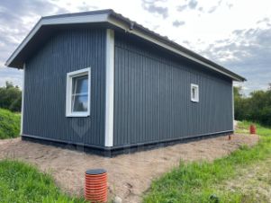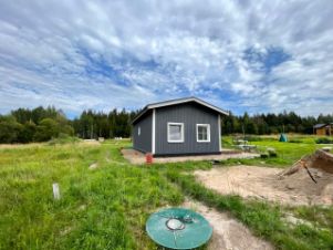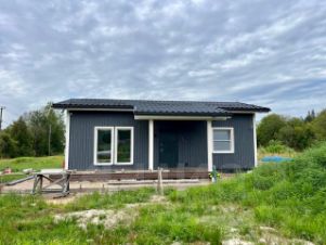 В доме удобная, продуманная планировка. Просторная светлая кухня-гостиная с панорамными окнами, две спальни, сан/узел, изолированная прихожая, большая терраса.