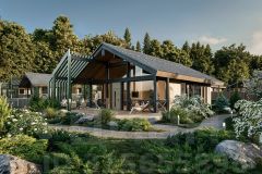 Камерный коттеджный поселок окружен лесом, стоит на первой береговой линии и с каждого участка открывается панорама на лес и водную гладь.