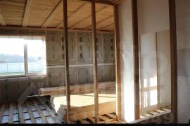 Фундамент выполнен из винтовых свай. Наружная отделка выполнена из качественного, крепкого сайдинга серо-голубого цвета. Крыша из металлочерепицы графитового цвета. Окна стеклопакеты двухкамерные энергосберегающие марки `Ivaper`. В доме предусмотрено на первом этаже: кухня-гостиная (26кв.м.), санузел (9кв.м.), гардероб (6кв.м.), прихожая (4кв.м.), котельная с выходом на улицу (6кв.м.), коридор (14кв.м.). Второй этаж: три комнаты (26кв.м., 15кв.м, 15кв.м.). Пирог пола: обрешетка, сетка от грызунов, цокольная ветро-влагозащитная мембрана, утеплитель марки `Роквул Скандик` 200мм, плёнка паро-гидроизоляционная марки `КМ`, демпферная лента, обрешетка. Для установки тёплого пола имеется все необходимое: трубы для тёплого пола 400м.,электро-котел,коллектор с насосом, терморегуляторы.Стены утепление 200мм, межэтажное перекрытие 150мм работает больше как шумоизоляция между этажами, перегородки 100мм, потолок второго этажа 200мм. В доме проведена сантехника.