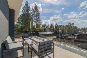 На второй этаж ведёт удобная и "воздушная" лестница со стеклянными перилами. Здесь расположено 3 комнаты (19 + 21 + 31,5 м2), включая хозяйскую спальню со своей гардеробной и ванной комнатой. Каждая комната имеет выход на балконы со стеклянными перилами. Здесь же на 2 этаже расположена просторная ванная комната (13,3 м2) и кабинет (16 м2). Изюминкой второго этажа является большая терраса (42 м2), с которой открывается прекрасный вид на посёлок и озеро.