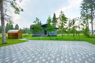Парковочное место - рядом с домом на участке, вымощено плиткой.