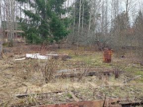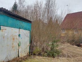 На втором участке металлический гараж (с запасом дров) + огород с оборудованными грядками и плодовыми деревьями.