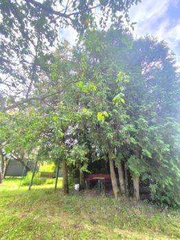 Участок ровный, прямоугольной формы. Огорожен частично забором. На нём расположен жилой дом, сарай, дровяник, колодец с питьевой водой, теплица, плодовые деревья ( яблони, сливы) и кустарники(крыжовник, смородина).