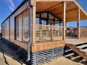 - Пocтpоен по кaркacнoй технологии из cуxой cтроганной доcки с иcпoльзoваниeм качecтвeнных материалов, на бетонных сваях