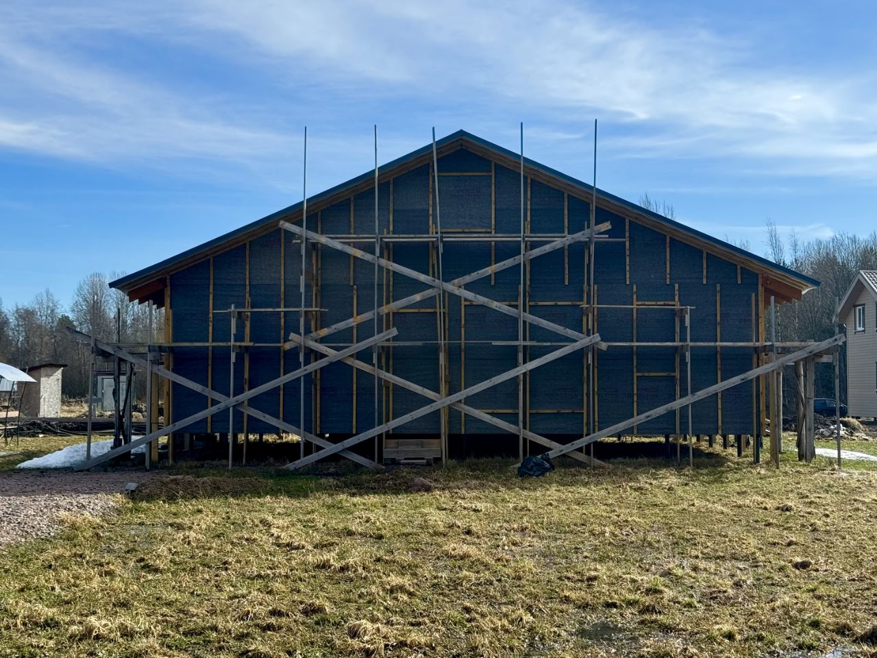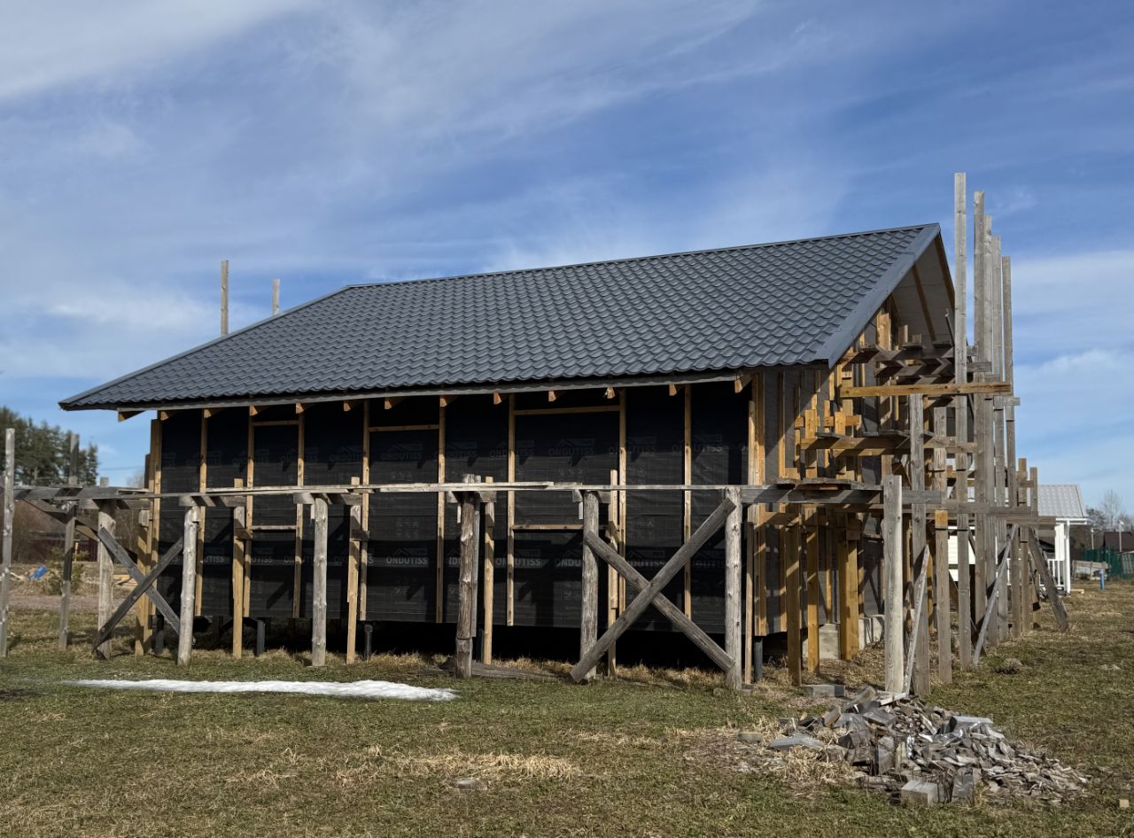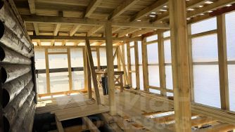 Построен по комбинированной технологии. Каркас дома и несущие конструкции сделаны из бруса. Часть дома - это бревенчатый сруб, 15 кв.м.