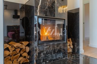 -просторная кухня-гостиная, увеличенные окна в пол, выход на широкую террасу. Дровяной камин в гостиной добавляет уюта.