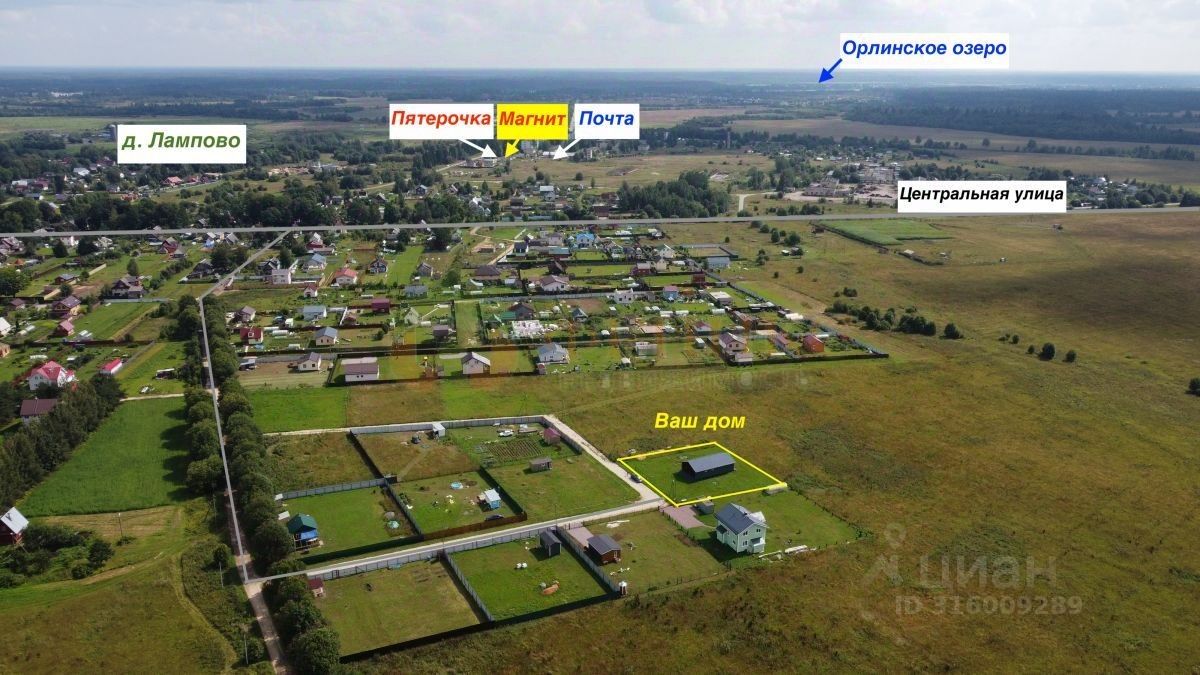 Обжитая деревня, пешая доступность от Магнит, Почта Росси и ж/д Лампово, Орлинское оззеро в 4 км. Электричка от ж/д Балтийский вокзал 1 час 40 минут, Ленинский проспект-Луга