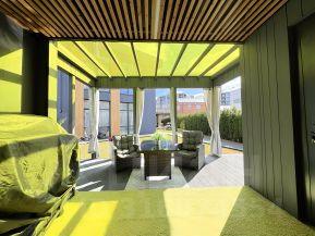 - Круглогодичный уличный бассейн (73 м) с автоматической (умный дом) раздвижной утепленной платформой