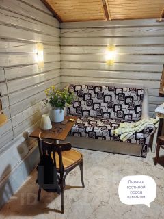 ***ДОМ из бруса 80кв. м. с открытой верандой 20кв. м. Двойная прихожая, кухня-столовая с TV Триколор, отгорожено спальное место с 2сп. кроватью, гостиная с камином и 2сп. диваном и еще одна спальня тоже для двоих со шкафом купе. Дом отапливается камином и небольшими масляными радиаторами, установленными под кроватями, дождливой осенью и ранней весной очень комфортно спишь, как на русской печи))). На кухне плита с газовым баллоном и вытяжкой, рабочий стол, мойка, круглый стол и четыре стула, холодильник, проведен летний водопровод, установлен бойлер. Вода в дом подается через насос из колодца.