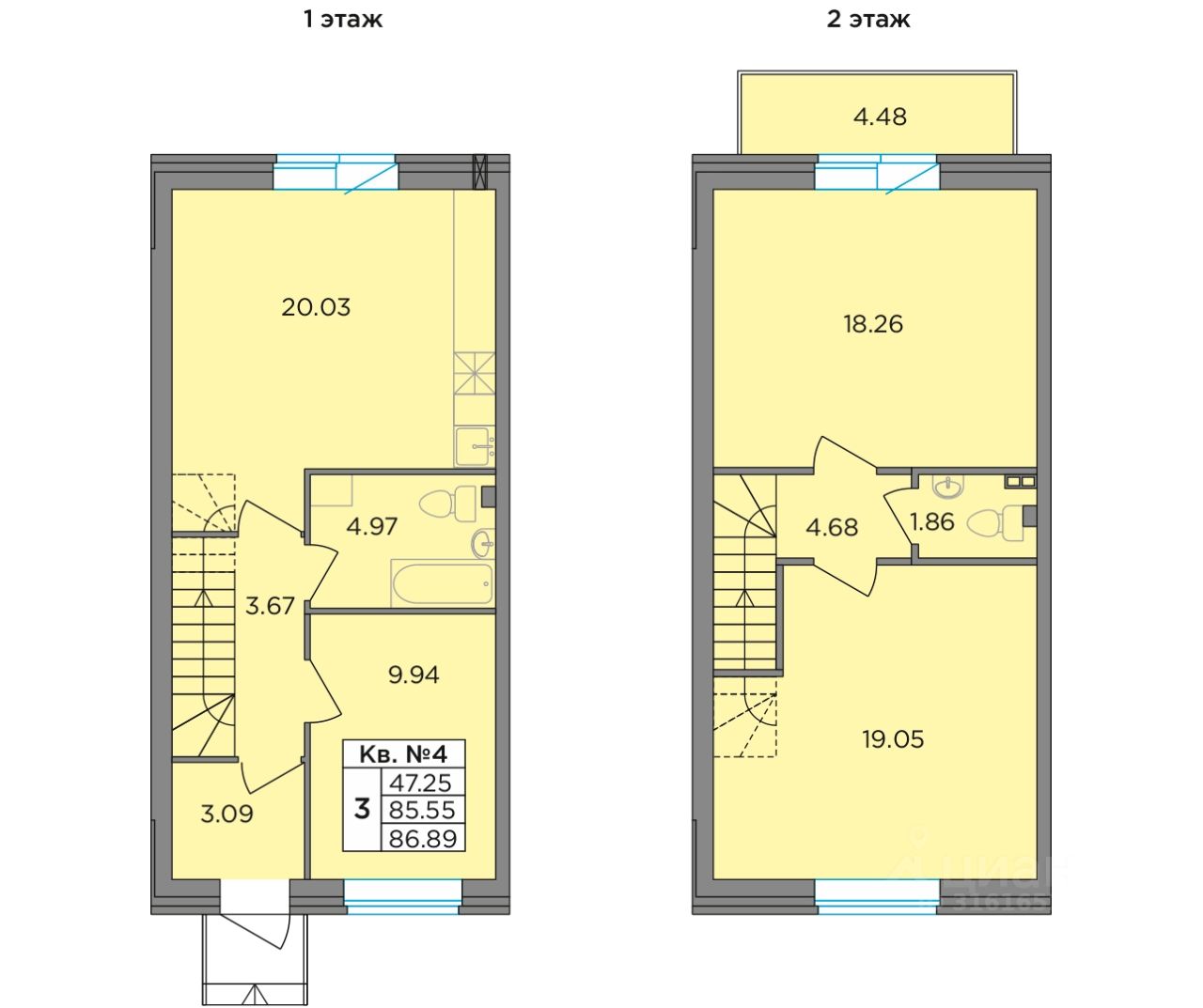 Общая площадь86,89 м²