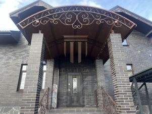 Внешняя отделка дома камень и клинкерный кирпич. Участок окружен забором, ворота откатные с пульта.