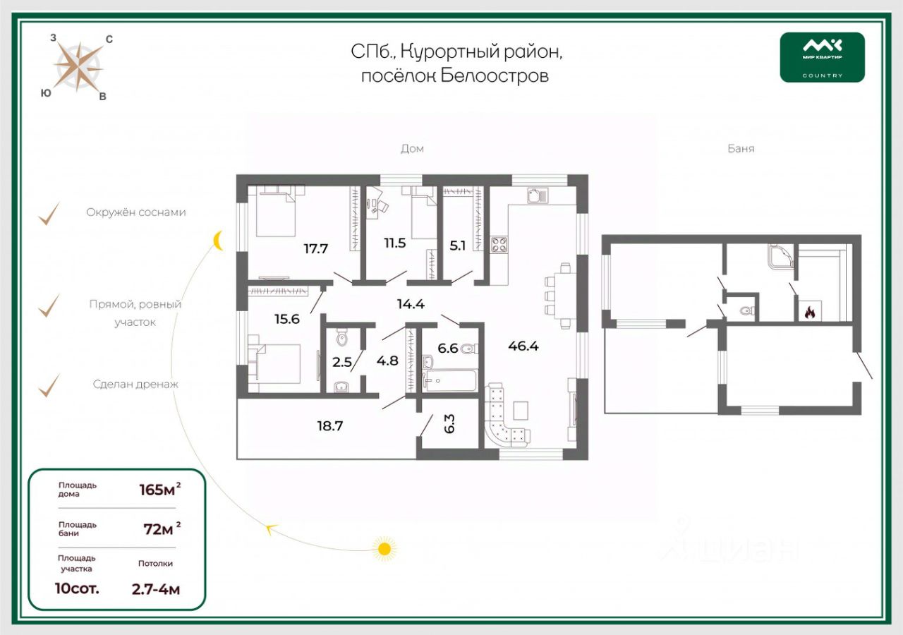 Дополнительно: баня, совмещенная со студией (под гостевой дом, охрану или персонал)