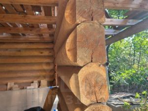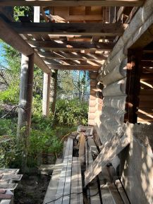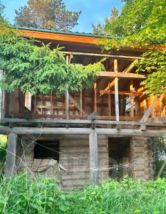 Второй дом зарегистрирован, не дострой, два этажа, фундамент на бетонной плите, сделан первый этаж из бревна ручная рубка d 25-35, в плите выводы под канализацию с трубами + там же колодец на 6-7 колец, из которого можно сделать водопровод в дом, во второй дом вода чистая питьевая подаётся из скважин.