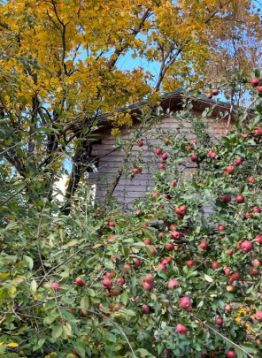На 21сотке земли растут сосны, черемухи под 30 метров, соловьи весной, птицы в белых ночах заливаются, старый плодовый сад с яблонями , сливами желтыми и синими, есть алыча, заросли вишни, малина, полный склон сирени белой и фиолетовой. Калина бульденеж ( белые шапки)есть смородина, кусты крыжовника по пояс, и прочие посадки. Теплица 10 / 3,5 метра. Яблок столько, что не собрать. И со всех сторон шикарное небо , ибо участок на горке. Покупая такой участок вы поймёте, что это большая удача.