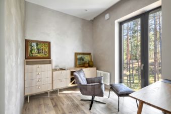 Из всех окон дома открываются захватывающие виды на вековые сосны.