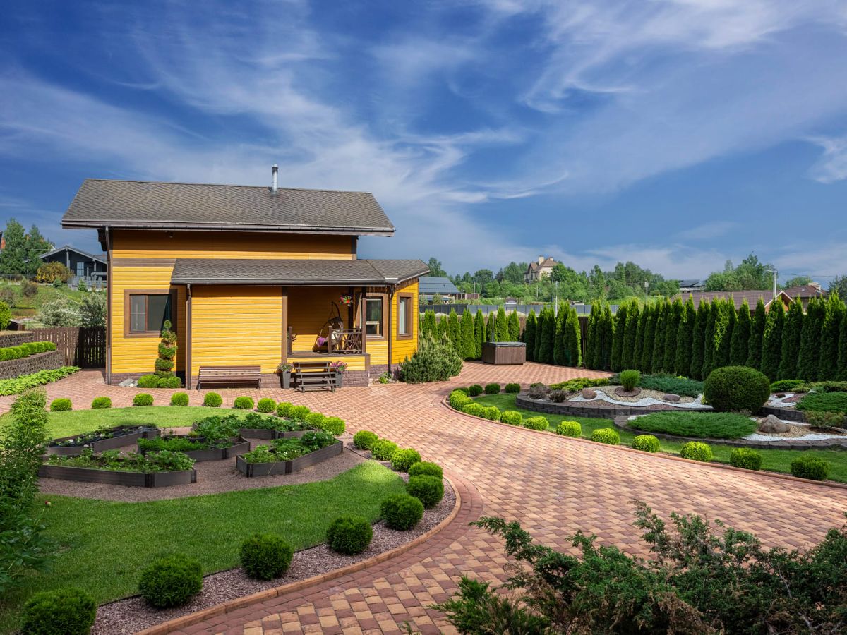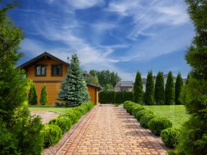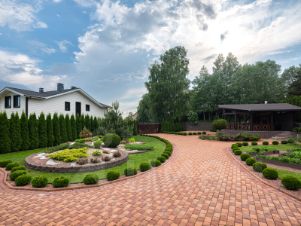 Выполнен ландшафтный дизайн. На участке растут более 100 крупномерных туй, голубая ель 4 метра, 6 плодовых деревьев, за детской площадкой шикарный малинник.