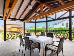 от дороги, не слышен шум от шоссе. Закрытый въезд под шлагбаум, при этом никаких ежемесячных взносов. Абсолютно все соседи живут постоянно. Идеальная транспортная доступность, в отличии от направления Вартемяги- Киссолово- Агалатово, никаких проблем с пробками. В пешей доступности Перекресток, аптека Невис, Хлебник, Цветоптторг, Озон. Мега Парнас, Охта-Парк, рестораны, конюшни, частные школы в 5-15 минутах езды на машине.
