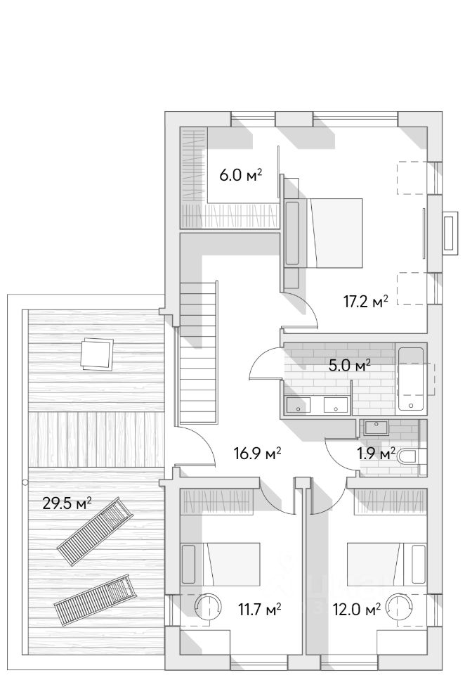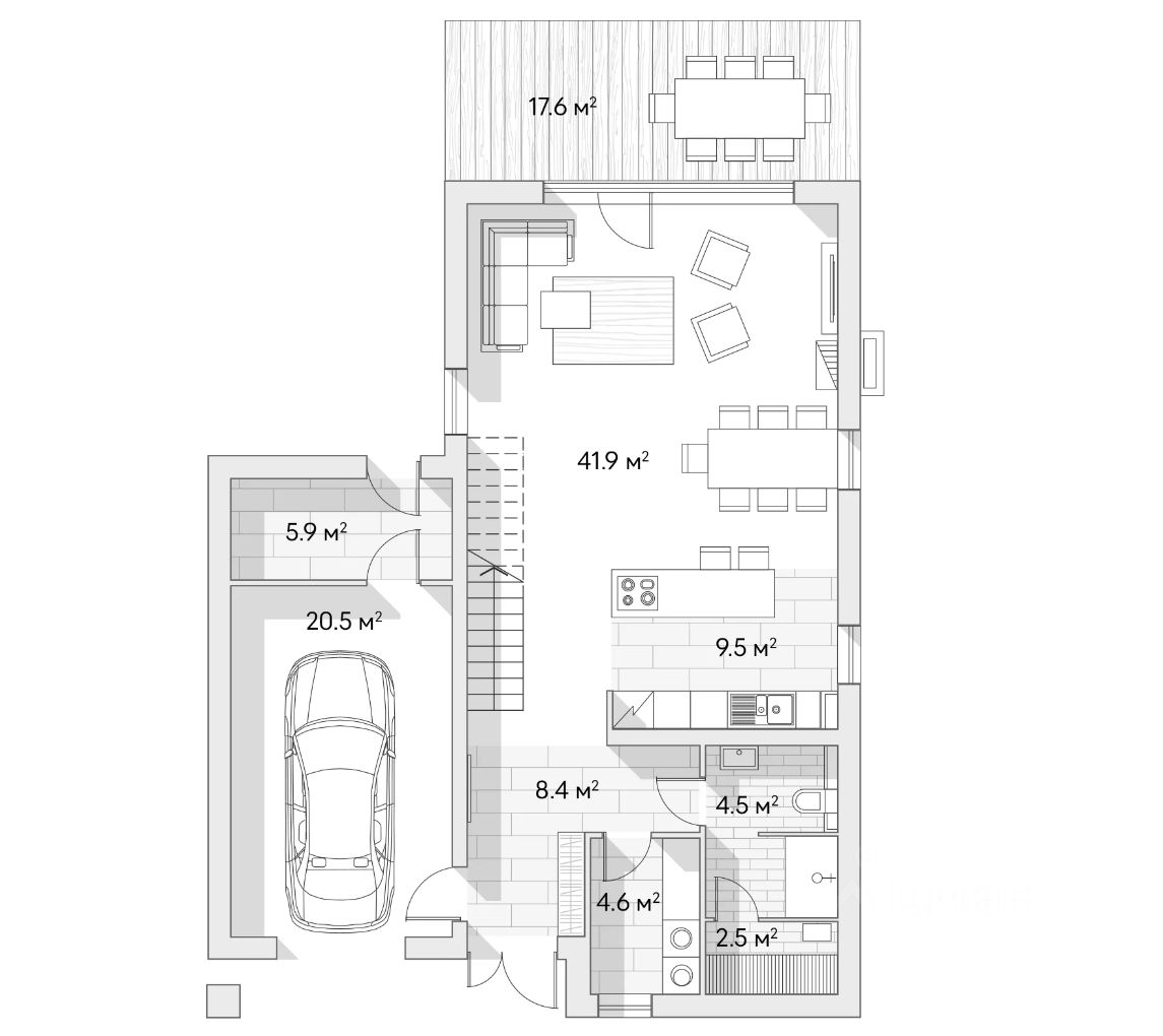 Домовладение прекрасно подойдёт для современных семей. Помимо трёх спален и просторной кухни гостиной оно включает сауну, сразу две террасы (одна из которых располагается на эксплуатируемой кровле) и тёплый гараж. Домовладение расположено в коттеджном посёлке бизнес-класса Негород Токсово. На территории проекта вы найдете свой лесной парк, а в окрестностях — магазины и рестораны, спортивные и рекреационные объекты, образовательные и медицинские учреждения.