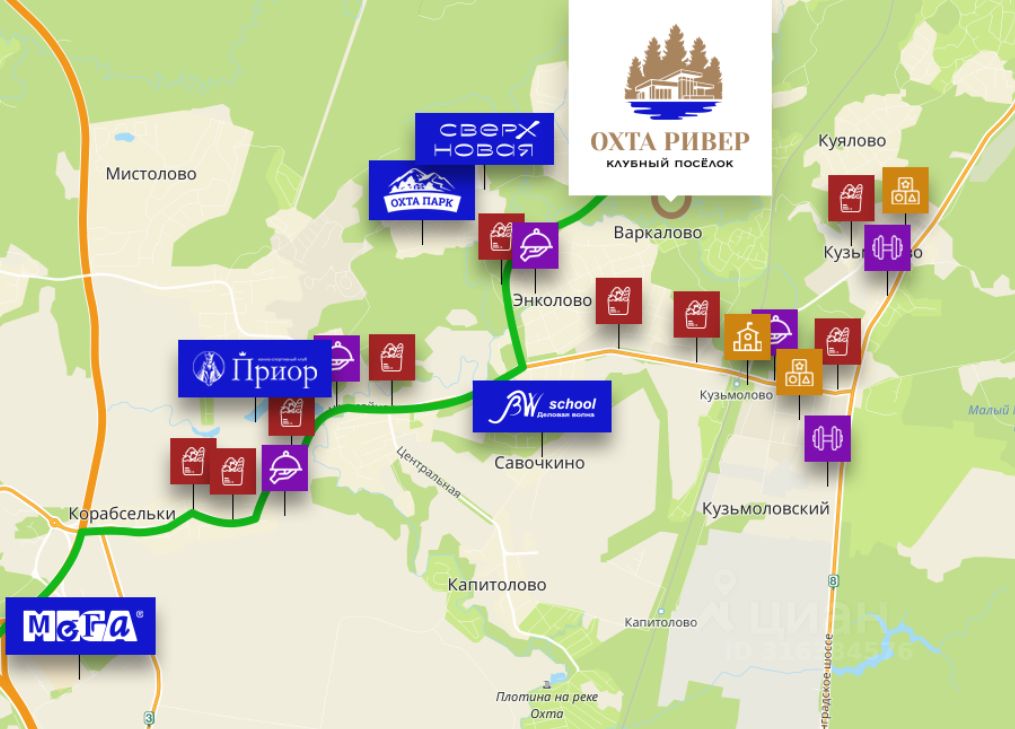 Представляем вам уникальный поселок премиум класса "Охта Ривер", расположенный в непосредственной близости от города, в окружение соснового леса, холмистого ландшафта и реки Охты, которая окружает территорию нашего поселка.