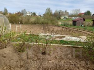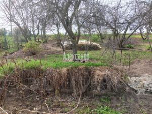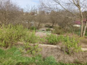Участок огорожен только с одной стороны. Имеет вытянутую форму и небольшой уклон. Участок разработан, есть яблони, сливы, груши, смородина, клубника.
