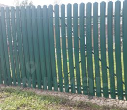 По периметру новый забор ЕВРОШТАКЕТНИК с откатными воротами.Сделан заезд для авто.