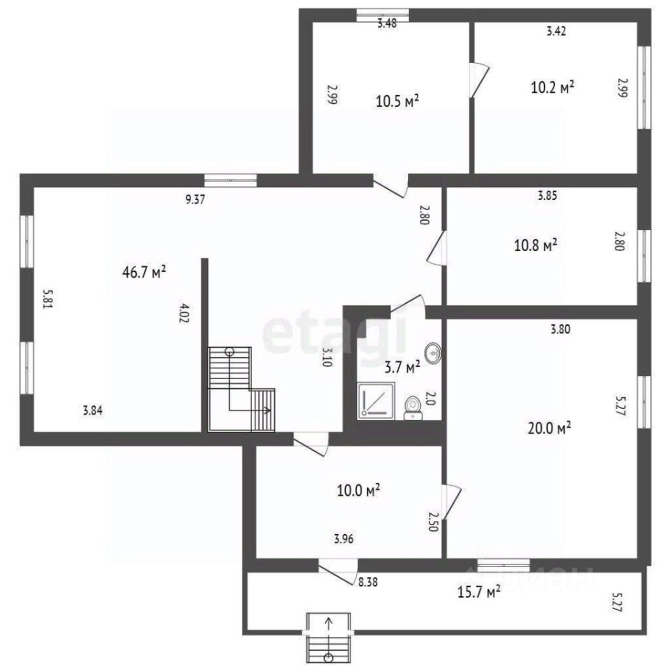 2 вместительных санузла, холл 12,2 м2, 2 кладовых 10,5 и 10,2 м2.
