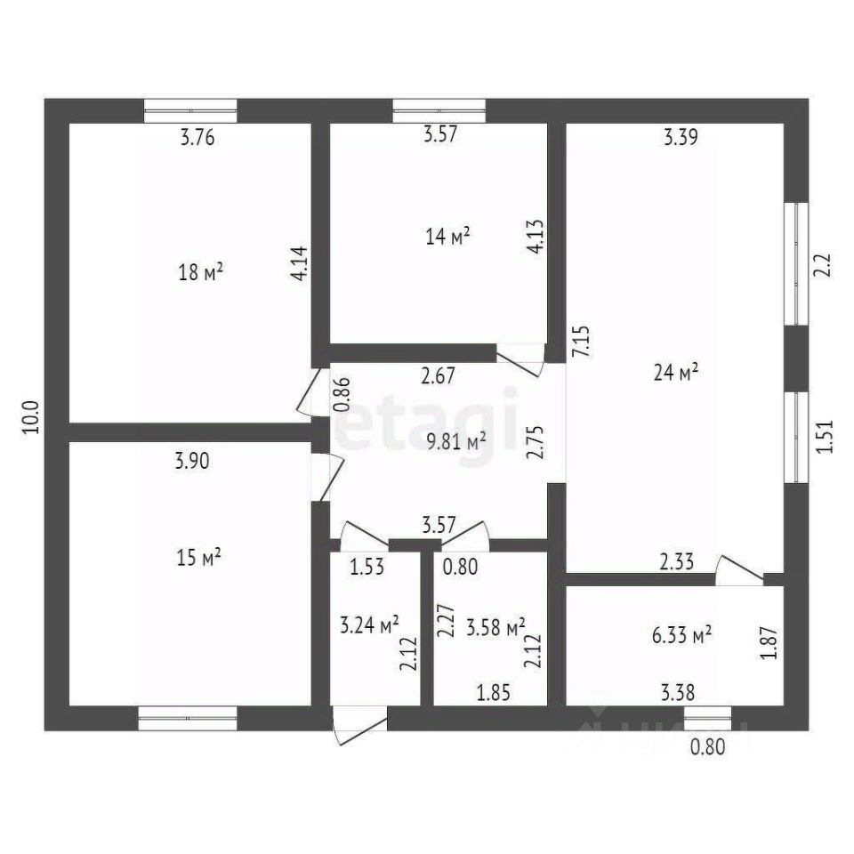 - 3 спальни (18 кв.м., 15 кв.м., 14 кв.м.);