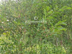 Участок прямоугольной формы, все отмерено и отмечено, установлен забор с распашными воротами. Растут на участке плодовые деревья и ягодные кусты.