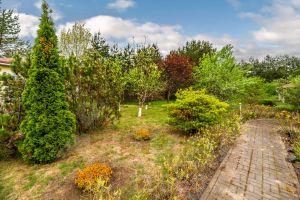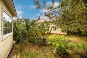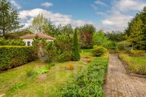 Участок площадью 10.5 соток сухой, ровный и полностью освоен. На территории проложены дорожки из тротуарной плитки. Разбит сад с яблонями, сливами, вишней, кустами сирени, туями и декоративными растениями. Проведено ландшафтное озеленение, есть ухоженный газон.