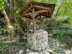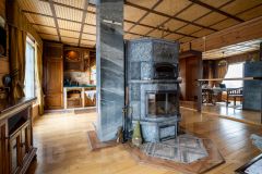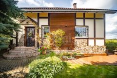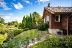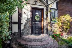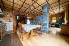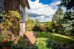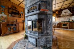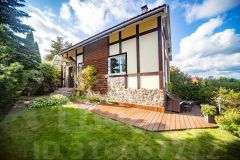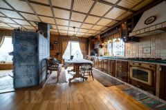 Основной дом (160 кв.м.): мастер-спальня с джакузи, кухня-гостиная с камином, 2 санузла, гардеробная, чердак.