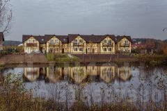 При строительстве таунхаусов используется газобетон и железобетонные перекрытия, снаружи утеплитель базальтовые плиты, штукатурка и покраска. Цоколь отделан природным камнем. Все дома имеют декоративную отделку деревянными декоративными элементами (фахтверк). Кровля металлическая черепица, мягкая или натуральная черепица.