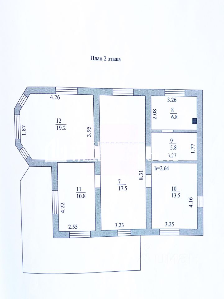 На втором этаже ТРИ СПАЛЬНЫХ комнат (19.2м², 10.8м² и 13.5м²), также еще один санузел (6.8м²) и ПРОСТОРНЫЙ коридор (17.5м²), где находится лестница на чердачное помещение.